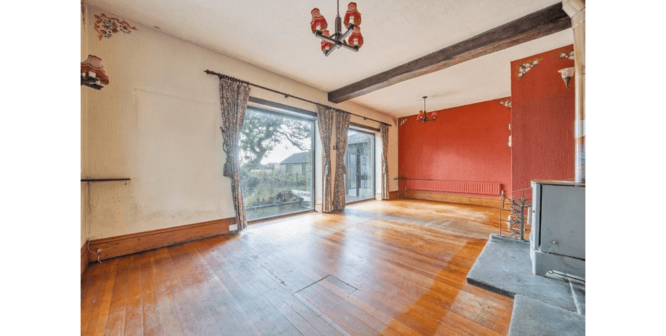 Versatile smallholding comprising a detached 1930’s bungalow together with a range of outbuildings with potential (subject to planning) and level gardens and paddock totalling 2.7 acres.